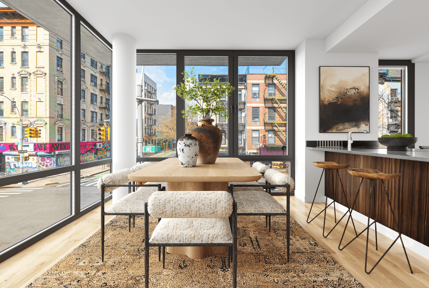 Welcome to 215 Avenue B #2B at The Copper Building, a southwest-facing 2-bedroom, 2-bathroom corner residence with 1,108 square feet of modern, contemporary, full-amenity condominium living in the heart of East Village.