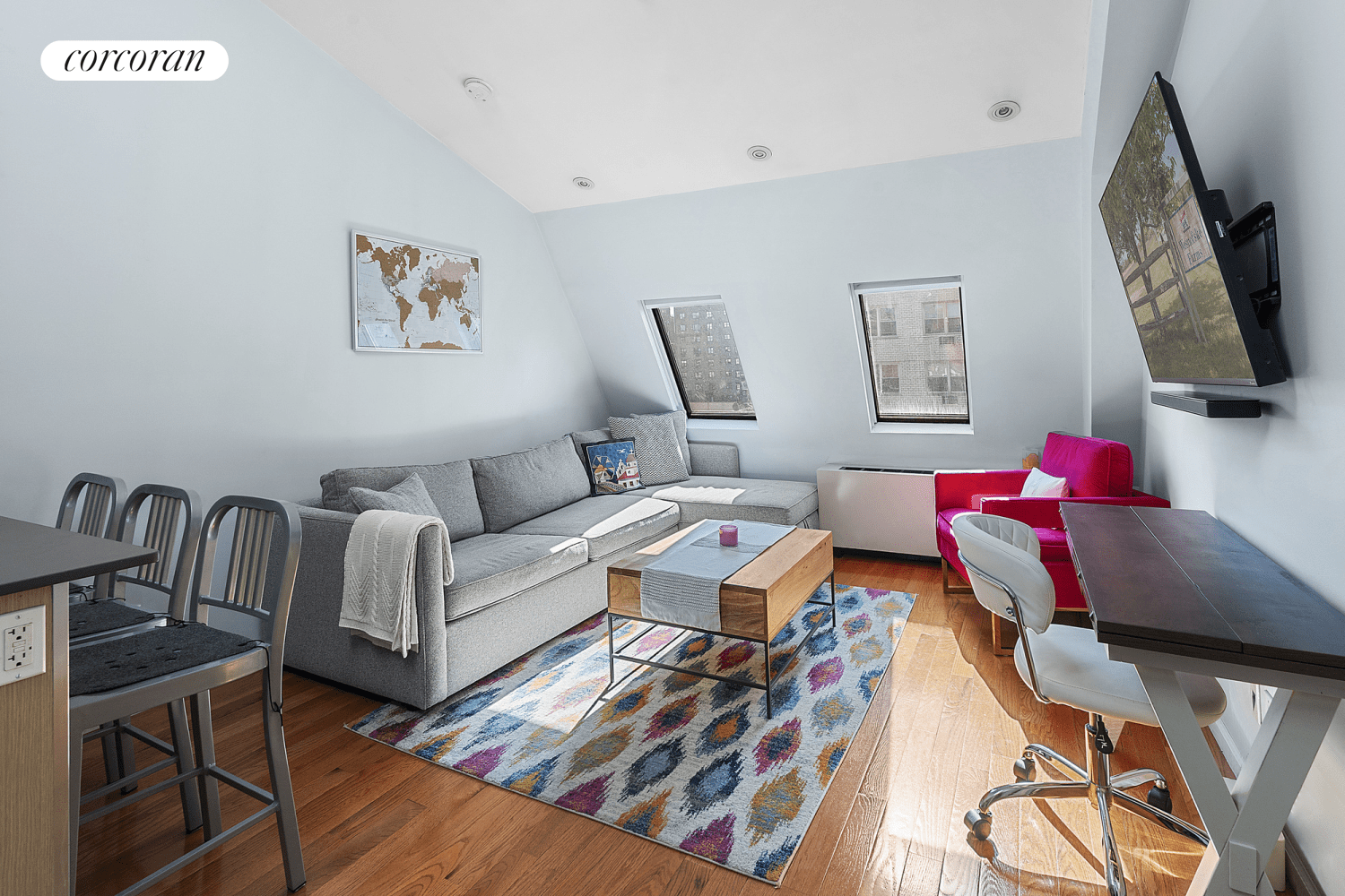 Welcome home to this sun flooded one bedroom duplex home. Located on the PH level of the building with sunny south exposures and your own private terrace space. This apartment is in excellent condition with a beautifully renovated open kitchen consisting of top of the line finishes custom wood cabinetry, large breakfast bar, Sub Zero refrigerator, Viking stove, and Caesarstone countertops. The kitchen is open to the living room which makes for a great entertaining space. Up the steps to your right is the primary bedroom, which leads to your private south facing balcony and en-suite bathroom. The primary has a huge walk-in closet and a separate dressing alcove. The apartment is wired for cable and high-speed internet and features insulated double-paned noise reduction windows and new HVAC cooling and heating systems. 215 East 81st Street is a unique boutique condominium located in the heart of New York City's Upper East Side. This full-service building is only eight stories high; all apartments are duplexes and each has a different layout. It features a common outdoor garden, laundry room, a residents' lounge, and part-time doorman. Located on a beautiful tree lined block, it offers the comfort of a quiet residential street surrounded by the very best services New York City has to offer, in the vicinity of top restaurants, Central Park, schools, museums, shopping, and public transportation.