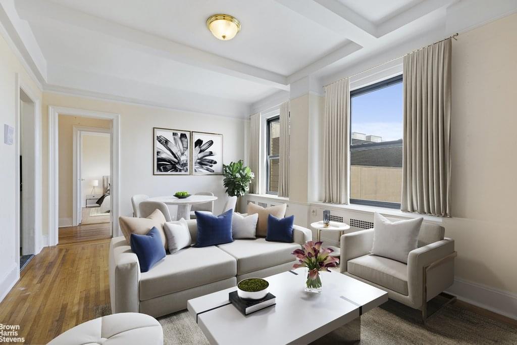 Move in ready corner 2 bedroom apartment on high floor with city views and great light is finally available in one of the best locations in Upper West Side. Carefully designed layout to maximize the use of every corner of this apartment. Separate windowed kitchen has plenty of cabinets for storage and countertops for preparing your meals. Full size appliances including a dishwasher and a microwave. Windowed bathroom with bathtub. Spacious living room and king size bedrooms. Hardwood floors throughout the apartment and high beamed ceilings. The Majestic Towers is perfectly located on West 75nd street between Amsterdam and Broadway, near both parks, subway on W72 and Broadway 1,2,3 trains, Trader Joe's, Fairway supermarket and all the fabulous restaurants and stores within a few blocks. This is a pre war elevator building with part time doorman (8am to 1:30am), live in super, laundry room and roof deck. Storage and bike storage available in the building (subject to waitlist and additional monthly fees). Washer and dryer in unit installation allowed with board approval. Please note this is a sponsor unit, no board approval required for this particular unit. Pets welcome! Maximum 80% financing. Maintenance $3,022.74. Showings are by appointment only through the listing agent.