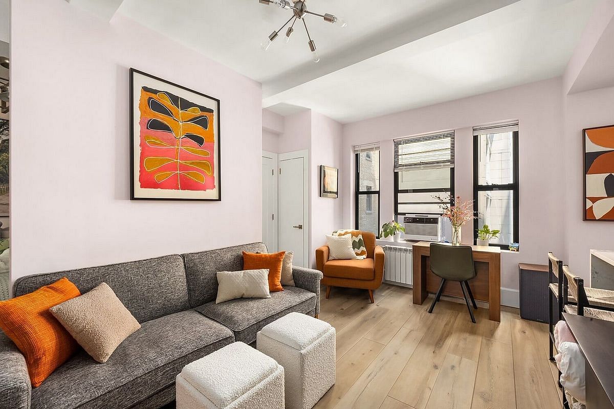 Perched on the 9th floor of 215 West 75th Street, this fully gut-renovated alcove studio has been meticulously reimagined with modern finishes. Every detail has been thoughtfully upgraded from the subfloor to the crown molding resulting in a turnkey home with soaring 9-foot ceilings and elegant design.