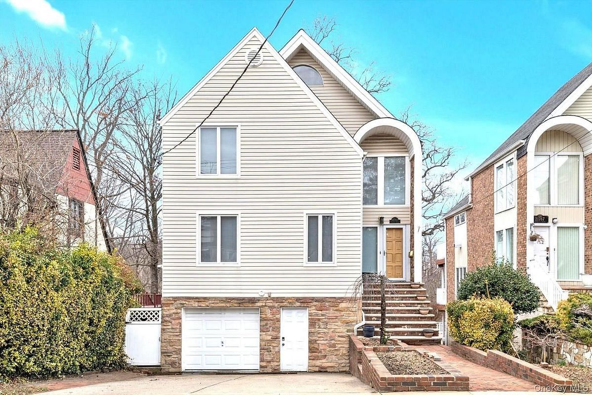 Magnificent split-level contemporary in Bayside's premier location, overlooking the serene lake and grounds of Crocheron Park! A grand entry foyer welcomes you and connects each level of this unique home, offering a great flow perfect for entertaining. Expansive living , master suite, and large rooms throughout. Six new skylights, central air, and sunny southern exposure fill every floor with natural light, all in excellent condition. The cozy fireplace anchors the main living area, while the stunning balcony above delivers breathtaking lake views. Three newly renovated bathrooms, a loft, a lower level with separate entrance, and a one-car attached garage provide space and flexibility for every lifestyle. Top-rated School District 26. Walk to Bayside LIRR just 25 minutes to Manhattan. Q13 and Q31 buses, A rare Bayside gem!