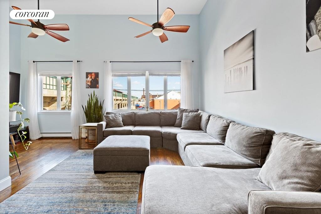 Upon entering this unit you are immediately struck by the soaring 15' ceilings, oversized windows and beautiful hardwood floors. The open floorplan allows you to have a large living area and a separate dining area which is right off of the kitchen. The open kitchen which is great for entertaining features stainless steel appliances, plenty of cabinet space for storage and beautiful granite counters that extends past the kitchen giving you more seating room at the counter. This level also includes two large bedrooms, one of which is an ensuite, another full bathroom and brand new LG washer/dryer. As you ascend up one more flight you will find a huge room that can be used as a primary bedroom, media room, den, gym or studio. There is another full bathroom on this level and ample closet space.
