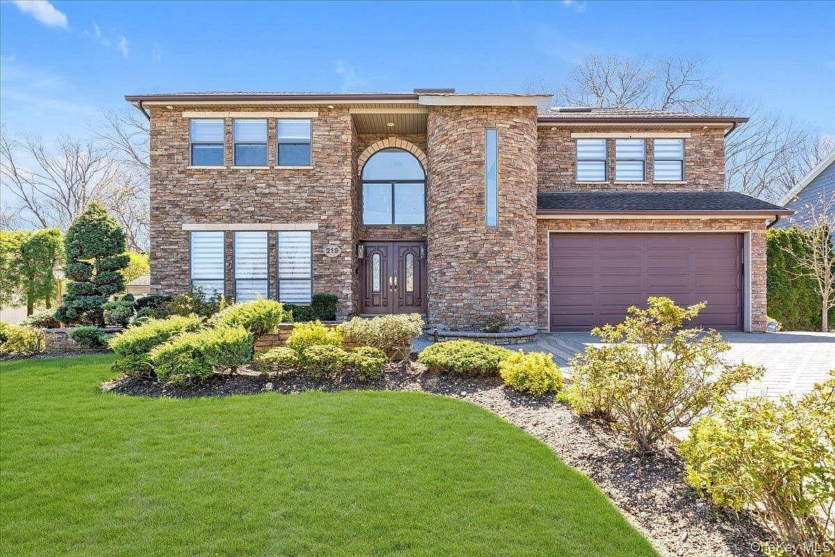 This beautifully maintained colonial offers 6 Bedrooms , 3.5 baths with a perfect blend of elegance, comfort, and modern living. The home welcomes you with a charming brick facade, a wide driveway, and clean, manicured landscaping. Inside a bright and spacious foyer sets the tone for the rest of the home. The main living areas feature large windows that bring in abundant natural light. A formal dining room provides a warm, inviting space for gatherings. The living room is open and airy, ideal for entertaining or everyday relaxation. The home also offers a cozy secondary seating area with a large stone fireplace. The breakfast area stands out with its multiple skylights and wall to wall windows. This space overlooks the private backyard and fills the home with natural sunlight. The kitchen flows seamlessly into the breakfast area for effortless daily living. Upstairs, the landing features a dramatic skylight and modern chandelier. This unique architectural detail makes the upper level feel open and sophisticated. The primary suite is spacious and bright, offering a calm retreat at the end of the day. The primary bathroom includes a soaking tub, separate shower, and large mirrors for a spa like atmosphere. Each additional bedroom is generous in size with ample closet space. The rooms feel fresh, modern, and move in ready. The finished basement adds impressive usable space to the home. This level includes a large recreation room with recessed lighting and durable flooring. A dedicated office room provides the perfect work from home environment. The basement layout is flexible for a gym, play area, or media center. Outside, the backyard is exceptionally private and serene. A large spacious patio offers room for outdoor dining and gatherings, that extends to a peaceful tree lined woods to Bethpage State Park. This natural backdrop enhances the sense of privacy and relaxation. . Enjoy access to the community pool and tennis courts, all located in the highly rated Half Hollow Hills School District. HOA fee is $170/month and includes use of common areas.