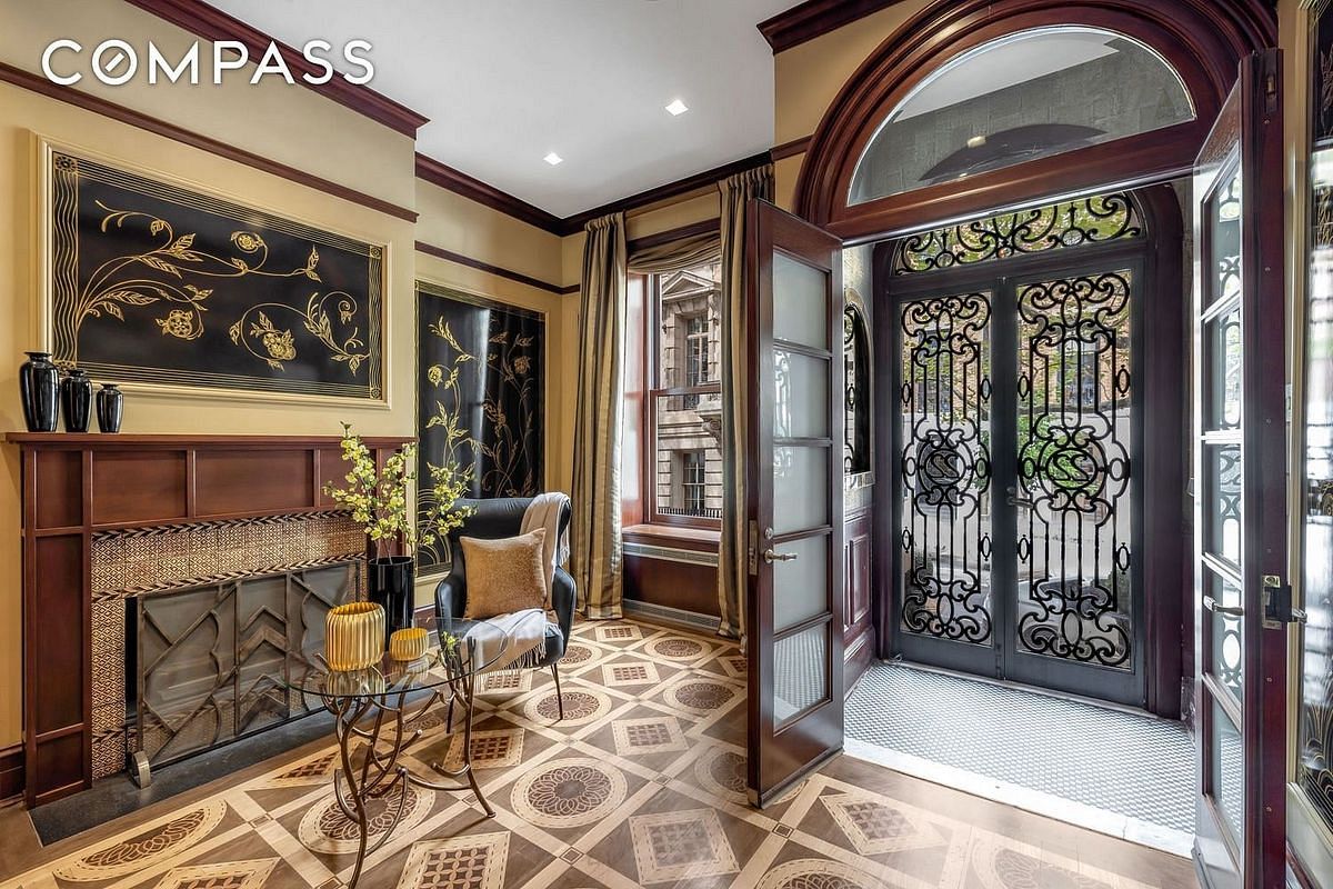 The house features a grand reception room with wood burning fireplace, opening to a double height gallery with 22 feet ceilings, appointed with hand painted wood flooring and beautiful custom built-in closets. On the same floor there is a grand library with wood burning fireplace and custom book shelves. One floor up is the impressive 34 feet double living room perfect for entertaining. The entire 3rd floor is the luxurious primary suite with a huge dressing room. On the 4th floor are two generous sized bedrooms with a south facing terrace overlooking the tree tops. On the ground floor are a beautiful paneled mirrored formal dining room, a chefs kitchen equipped with Sub-Zero refrigerator, two Miele dishwashers and Viking range, also a intimate breakfast room. In the back is an elegant lushly landscaped garden. There are an exercise room and staff quarters with full bathroom in the basement. Overall the house allows 4 or 5 bedrooms and 6.5 bathrooms.