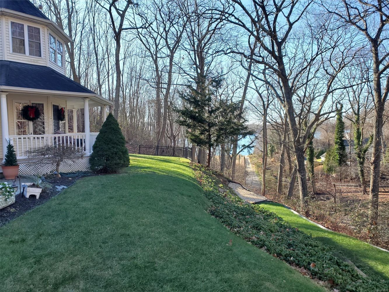 This stunning, youthful Post Modern home is situated just one house away from a private Belle Terre beach. Tucked into a hill, it boasts a low-maintenance property with extreme privacy. This well-kept four-bedroom home features flowing hardwood floors, high ceilings, clean-lined moldings, a spacious first-floor office, and much more. The formal living room and dining room lead to a large open kitchen and den. The primary bedroom includes two walk-in closets and an en-suite bathroom and winter water views. Three additional guest bedrooms and a guest bathroom complete the second floor. A full, unfinished basement with high ceilings, a two-car-plus garage and pull-down attic access provides ample storage. Winter water views from the wrap around porch, primary bedroom and living room. Harbor front beach access at the end of the street includes kayak storage. The community also offers two additional private beaches, constable service, private parks, sport court and community center.