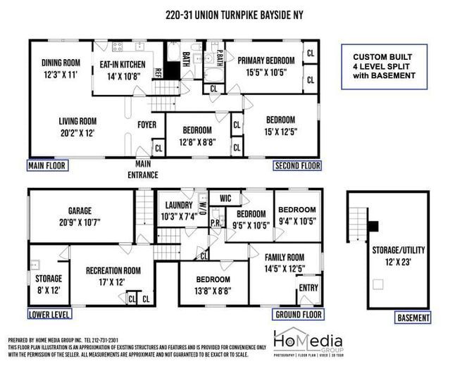 -Second Lower Level: A large family room, storage room, and access to both the garage and the basement.