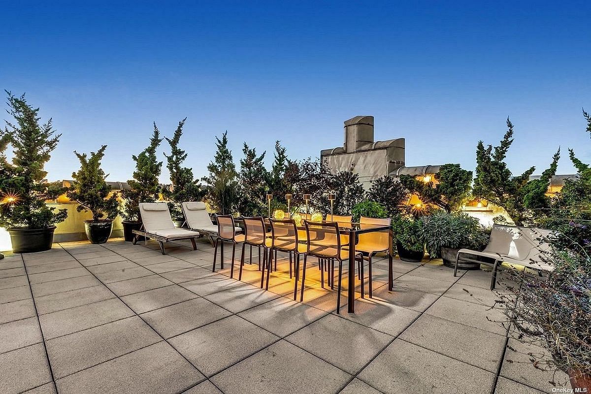 What sets this home apart is its seamless connection to an over 1,070 sq. ft. private, landscaped roof terrace, accessed directly from the great room through oversized doors. This outdoor haven spans the full length of the apartment and has been thoughtfully furnished with a grill, outdoor dining ensemble, lounge seating, and dedicated water and electric, ready for immediate enjoyment.