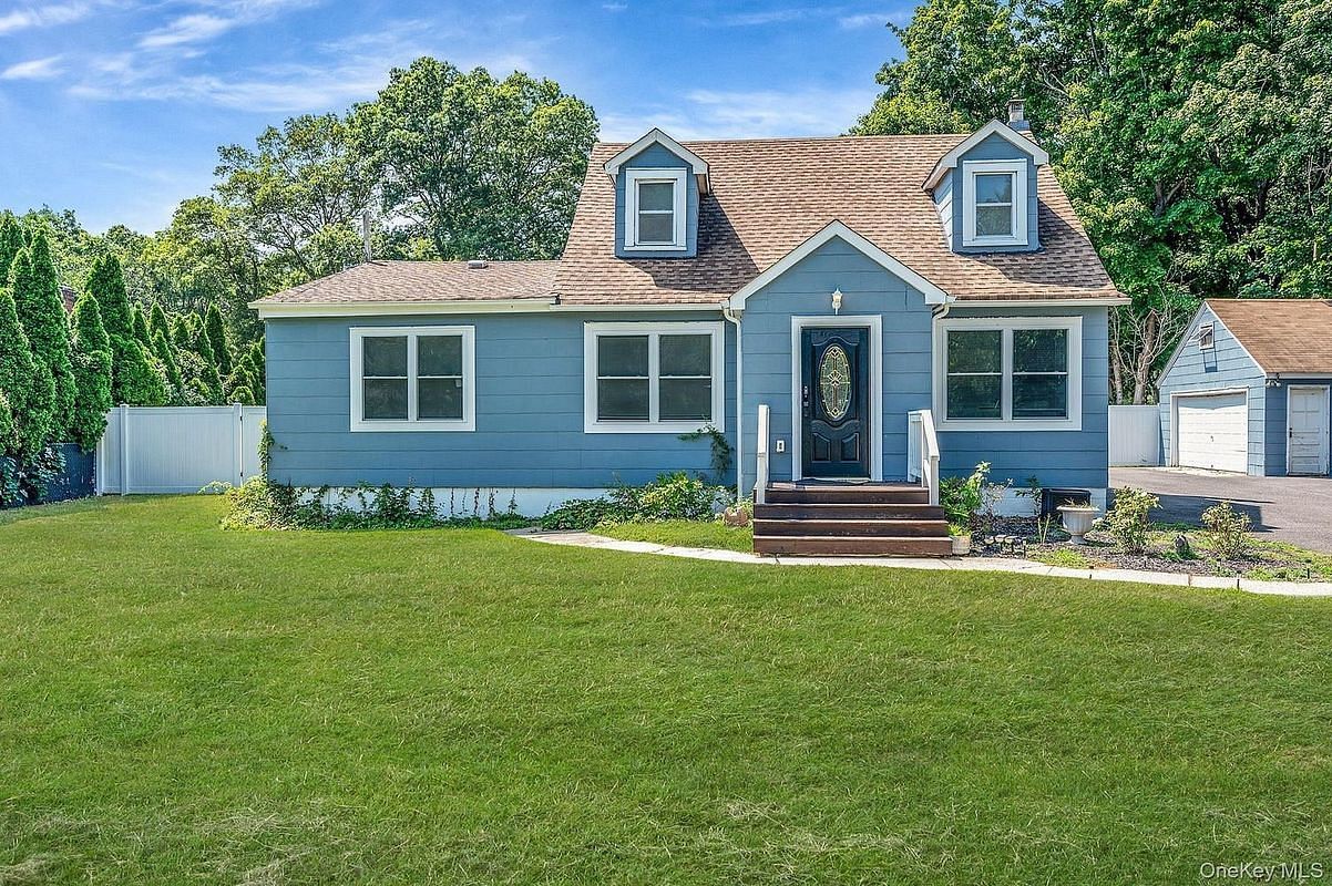 Welcome to this charming 4-bedroom, 2-bath Cape, perfectly situated on a spacious half-acre lot. The first floor boasts an inviting open floor plan featuring a den, dining room, and a beautiful eat-in kitchen with granite countertops, a peninsula, and stainless steel appliances. Hardwood floors and recessed lighting flow throughout, adding warmth and elegance. A separate living room offers additional space for relaxing or entertaining, along with 2 generously sized bedrooms and 2 full baths.