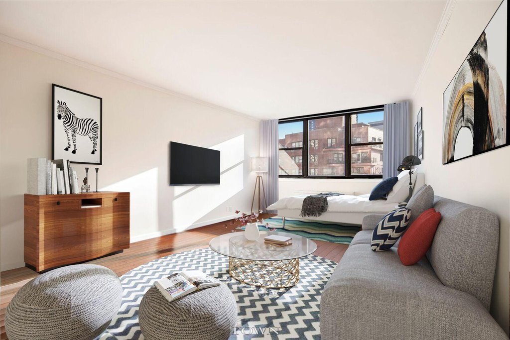 This high floor studio, completely gut renovated, is located in one of the first major buildings built in Murray Hill in 1963. It was converted to co-op in 1985. This apartment is filled with sunlight and brand-new everything, from painting to elegant bamboo floors.