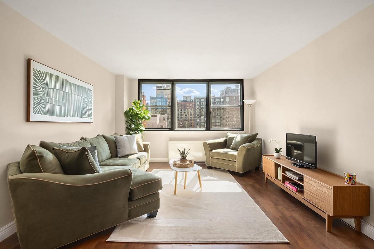 Flooded with natural light, this high-floor, spacious one-bedroom, one-bathroom home at 225 East 17th Street offers a rare blend of space, style, and serenity. With open southern views stretching over the city skyline and additional eastern exposure providing a partial river view, this residence is a tranquil retreat above the city.