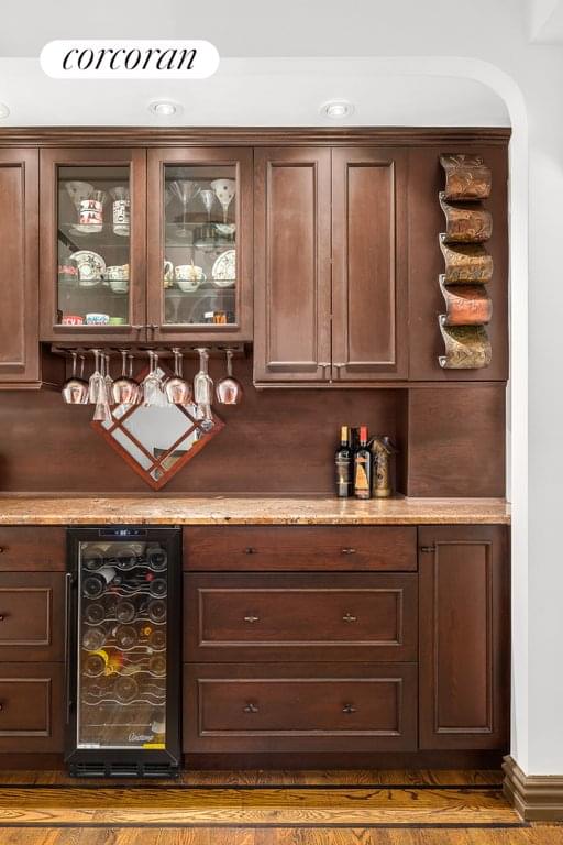 Move right in! This massive, beautifully renovated Art Deco one bedroom coop at 225 West 25th Street in Chelsea is the largest in the building. A corner unit with south and east exposures, this home offers a formal entry gallery and a dedicated dining area presided over by a gorgeous, granite-topped bar with copious cabinetry and a wine refrigerator. The windowed kitchen opens to the living room and boast stainless appliances including a Fisher Paykel stove and oven, Kenmore dish drawer, tall Summit commercial refrigerator with a large bottom freezer, and a built-in microwave oven drawer. Beautiful wood cabinets with plenty of soft-close drawers make for convenient cooking. The living room is enormous and set well apart from the bedroom for maximum privacy and entertaining. The well-appointed bathroom has a window, a glass-enclosed tub/shower combo and a lovely vanity with storage. The bedroom fits a king-sized bed, has three corner windows facing south and east and an enormous, custom-designed double closet, with drawers and cabinets as well as hanging space. Not only is this a large home, it feels even larger thanks to the quintessential Art Deco details including the separation created by the two galleries, the sunken living room, 9-foot ceilings, plenty of closet space, original picture rail and high baseboards, and the rich oak floors in three styles -- herringbone, parquet and plank. The cherry on top? A huge basement storage cage comes with this home.