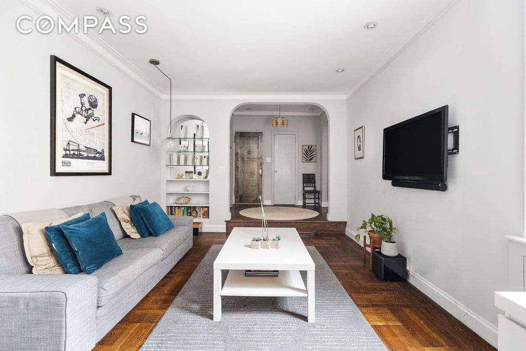 Enter this beautiful home into an oversized entry foyer with two large outfitted closets. The large south facing sunken living room has custom built-ins and plenty of room for multiple seating areas. The separate dining area is adjacent to the windowed galley kitchen with stainless steel appliances, including a dishwasher, and abundant cabinetry & countertop space. The large corner bedroom has both southern and western exposures, a double-size closet with mirrored doors along with ample space to fit a king size bed. The traditional prewar windowed bathroom is located off the common hall. This beautifully renovated home has enormous closets, hardwood floors, high ceilings, and charming arched walkways that define each space. Offering a flexible layout, this apartment line has been configured in many different ways to suit different needs.