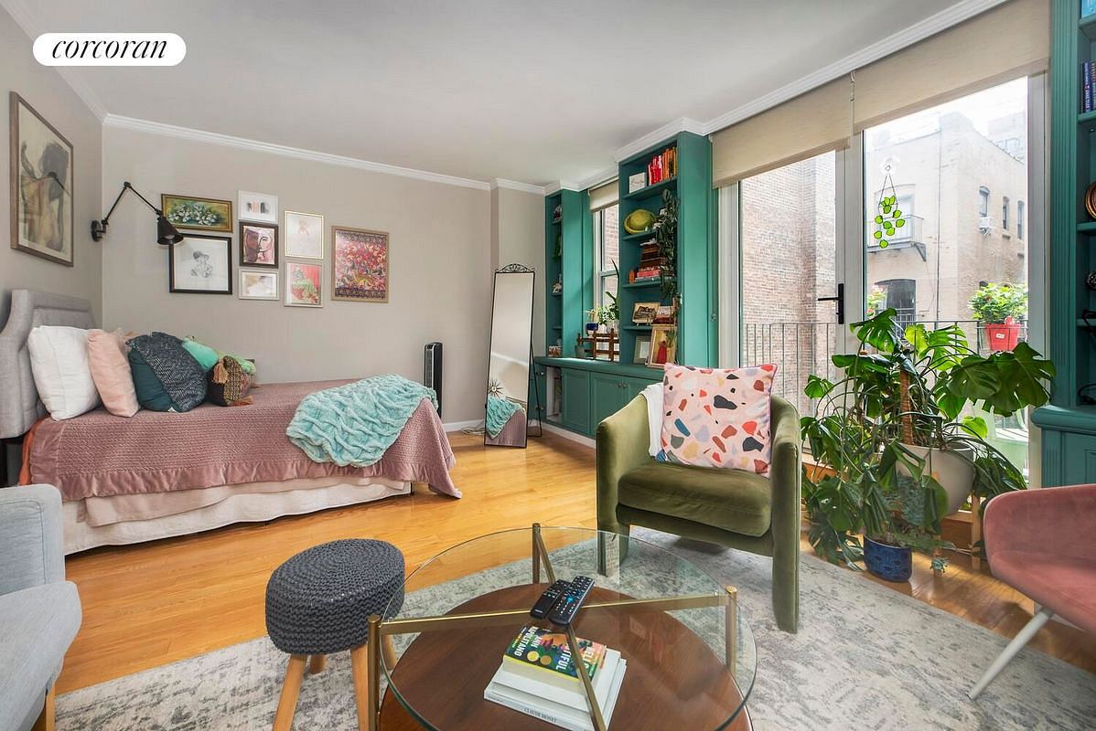 This gorgeous, colorful apartment could be yours! This studio unit underwent renovations both above and beneath the surface, carving out important closet and storage spaces to bring another level of comfort to this dreamy, large corner unit. Bathroom has been updated and a few kitchen appliances have been replaced. To top it all off, a private interior facing balcony provides a coveted outdoor oasis: a rare find for a studio apartment.  The staff in this building stands the test of time with 24 hour doormen and a live in super all of whom have been around for decades. Building has a laundry and gym, and this condo is investor and pet friendly: you can really have it all in the upper west side!