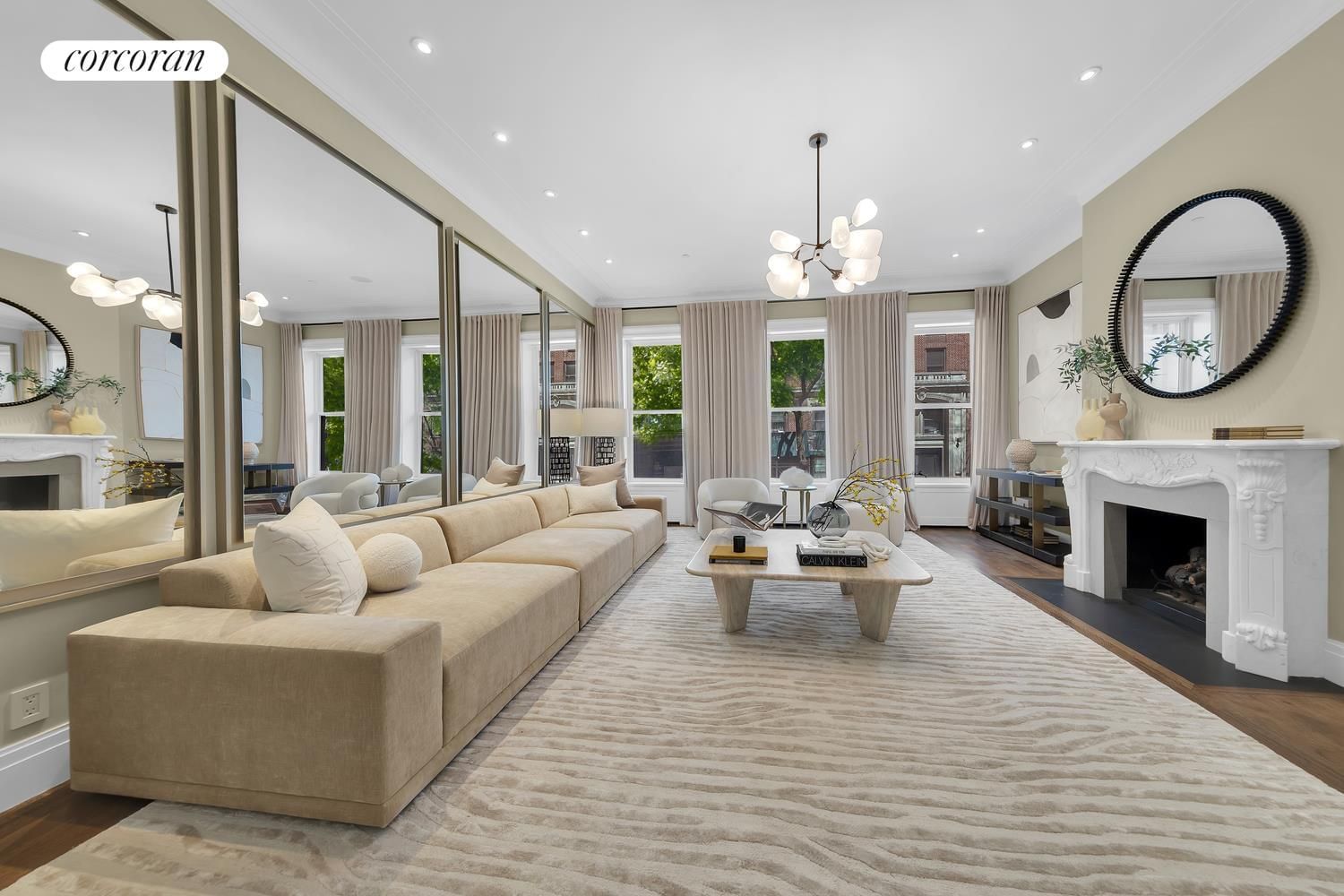 This special residence presents an elegant elevator that services six floors with a layout of up to seven bedrooms, six full baths and three half baths of living quarters, and two floors of formal space plus a fully renovated basement. The exquisite full-floor primary suite includes white marble bath, grand steam shower, separate toilet room, free-standing Agape tub and the ultimate in luxury -- a 21-foot custom closet and dressing room.