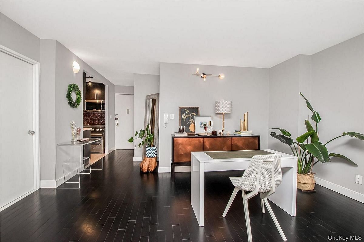 Over-sized one-bedroom condominium with a deeded parking space and a storage bin, ideally located in the Spuyten Duyvil section of Riverdale at the luxurious Riverpointe on the Hudson. The expansive living room offers exceptional flexibility, easily accommodating both a dining area and a dedicated home office. The sleek, modern renovated bathroom features a white marble-top vanity, crisp 1x1 tiles, and brushed-nickel finishes. The spacious bedroom boasts a wall of windows that floods the space with natural light, along with a large walk-in closet. The galley kitchen is outfitted with abundant wood cabinetry, stainless steel appliances, marble countertops, and a mosaic backsplash. Riverpointe residents enjoy a full suite of amenities, including a 24-hour doorman, fitness center, roof deck, central HVAC heating and cooling, and pet-friendly living. Perfectly situated just moments from neighborhood shops, restaurants, local and express buses, and the Spuyten Duyvil Metro-North station—providing a convenient 25-minute commute to Grand Central. Common charges of $1,066 include parking and storage. Property taxes as reflected do not include the applicable abatement of $1,440 per year. Financing available with as little as 5% down payment.