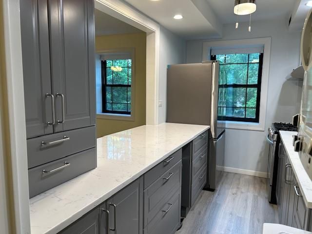 Located in a private garden courtyard of the much sought after Interlaken Gardens, this bright and spacious 2nd floor corner unit, has 2 bedrooms, that was completely updated in 2021. Windows in every room! This unit features a wonderful, updated kitchen with quartz countertops, updated appliances, custom cabinetry, backsplash, washer/dryer, and recessed lighting. Other updates in 2021 included: bathroom renovation, new carpeting and a new electrical panel with separate dedicated electrical lines for air conditioning units. This beautiful home has private beach & lake access to Lake Innesfree. Swim, boat, fish! Sailboats, rowboats & kayaks are permitted. For an annual fee, boats can be stored on a rack at the waterfront. Playground, firepit, BBQ, picnic tables, and Adirondak chairs to soak in the view! Public tennis courts and larger playground are within walking distance.