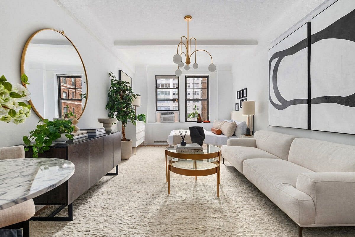 Welcome to Apartment 704, a prewar studio with high ceilings and southern exposure in a luxury coop just minutes from Central Park. Not since 2023 has a studio been available for sale in the building. Enter to a bright charming foyer with just enough space for a table to drop your keys and know you are home. The prewar detail of casement windows and almost 9 foot ceilings beckon you into the generous living space. With kitchen and bath off the hall, you have a spacious living room that can easily accommodate a queen bed, dresser, desk, couch, and dining table in any configuration you wish. Views are south over West 73rd street. The kitchen offers full size, stainless steel appliances and brand new quartz counters. The generous bath has blue mosaic tile and a cast iron tub. This property offers an A+ location and the flexibility to be your primary residence or your hotel room in the city.