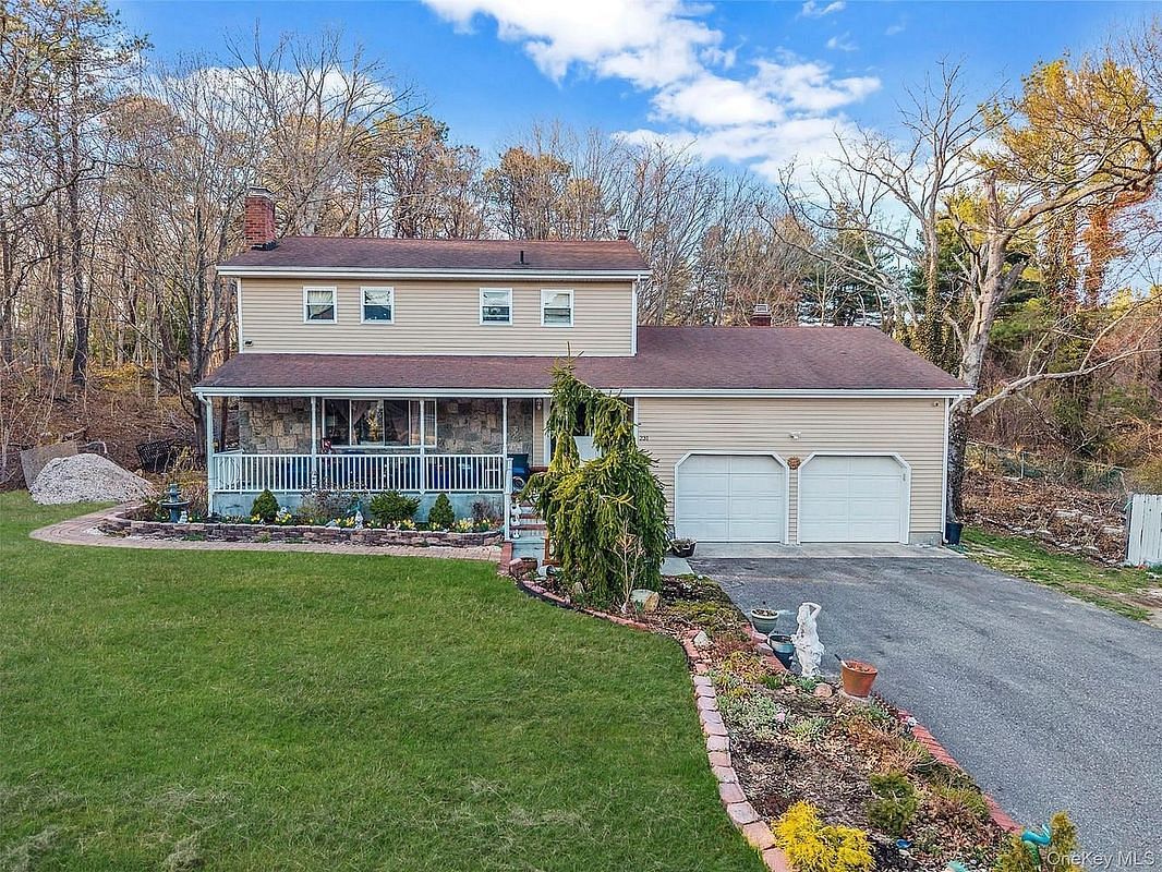 Welcome to this beautiful Colonial-style single-family home nestled in the heart of Patchogue, located within the highly sought-after Patchogue-Medford School District. This spacious two-story residence features 4 generously sized bedrooms and 2.5 bathrooms, offering the perfect blend of comfort and functionality. The home boasts a bright and inviting living room and formal dining room, ideal for everyday living and entertaining. Enjoy outdoor living with a charming porch, a relaxing patio, and an expansive front and backyard set on an impressive 0.53-acre lot. Additional highlights include a full finished walk-out basement providing versatile space, a private driveway, and a 2-car garage for ample parking and storage. This exceptional property offers space, style, and convenience all in one—don't miss the opportunity to make it your own!