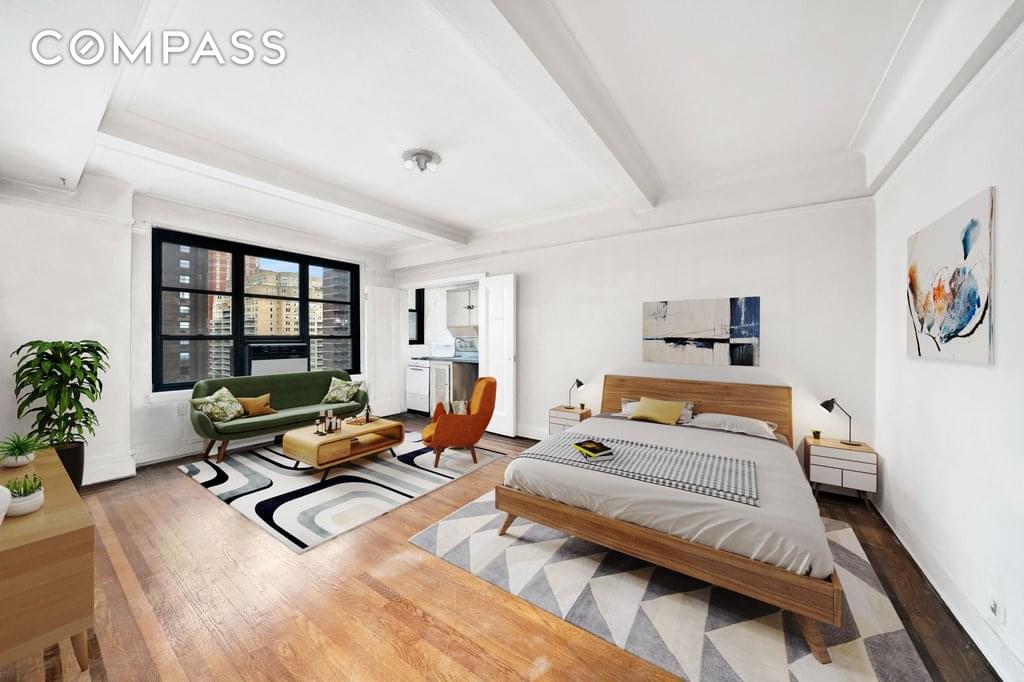 With open northern city views, this bright, charming studio at Gramercy House, the highly sought-after Art Deco coop on East 22nd Street, has a large living space, windowed kitchen and bathroom with the original pre-war subway tiles and tub, dressing room (next to bathroom) with a closet and two additional closets in the entrance foyer. The apartment retains many of the original pre-war architectural details, including a beamed ceiling and an inlaid border on the hardwood floor. A buyer will want to upgrade the kitchen area and make additional improvements. A competitive asking price and with an extremely low maintenance, 11N includes all electricity, heating and A/C. A wonderful full service pre-war coop close to Union Square and the East Village, Gramercy House is an exceptionally well run building with a full time concierge, an exclusive resident garden and a roof deck with dramatic views of midtown. The apartment is pet friendly and has a laundry and bike storage. Parents and children co-purchasing is not allowed nor are pied a terre buyers. Gifts are allowed and guarantors are considered. Maximum financing allowed is 75% of the purchase price.