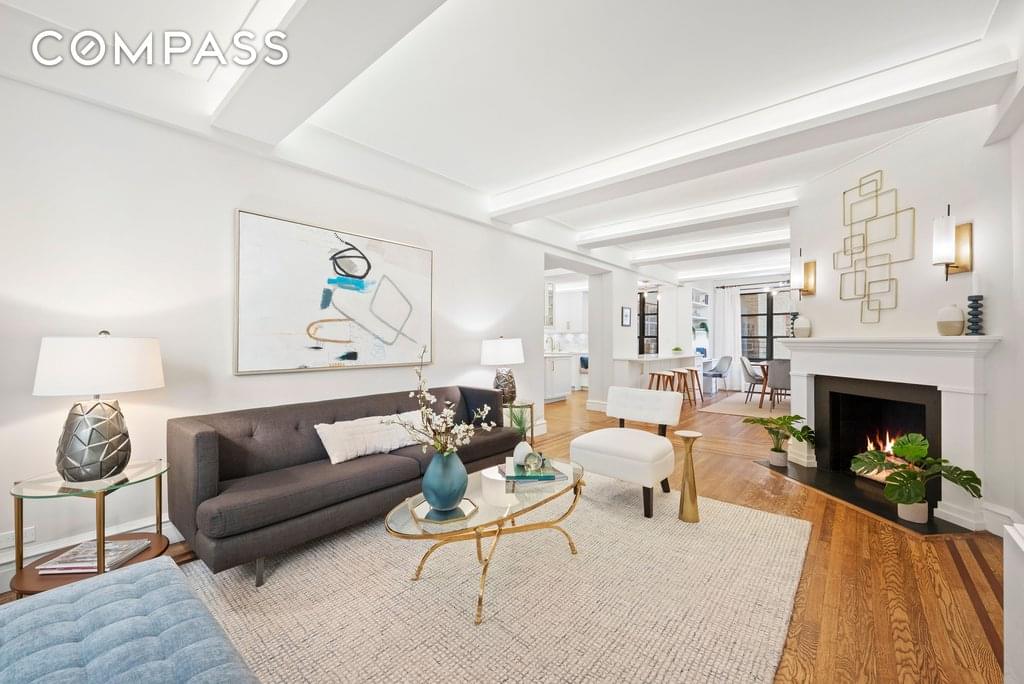 Enter through a gracious foyer that unfolds into an expansive living and dining space bathed in natural light from three oversized windows in each room providing both eastern and western exposures. The living area, distinguished by a working wood-burning fireplace, sets the stage for memorable gatherings and intimate evenings alike. A dining room of grand proportions awaits, ready to host dinner parties of any size.