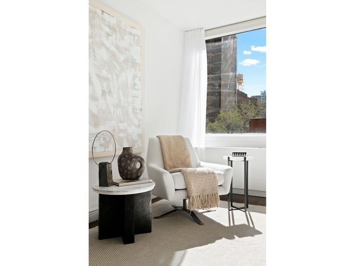 Awash in sunlight, the large primary bedroom with a south-east corner exposure easily accommodates a king-sized bed and has an extra-deep customized closet. The windowed marble en-suite primary bathroom features a granite topped vanity and a new medicine cabinet. The spacious second bedroom easily accommodates a queen-size bed, has oversized windows facing east and two nice closets. A second full bath, clad in Carrara marble, features a granite topped vanity and sits just off the foyer.