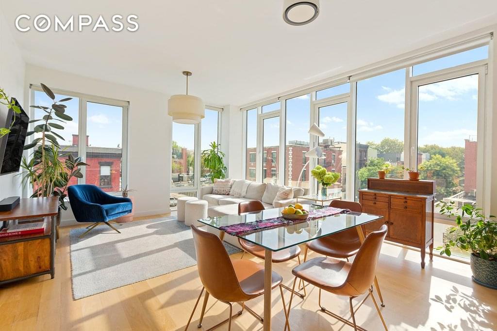 Welcome home to the two bed, two bath condo you have been waiting for in the South Slope. The Aaron is a boutique elevatored condominium built in 2018, designed by Tom Winter Architects. This apartment is the first re-sale in the building. Upon entering this home, you will find generous ceiling-height windows, opening up to lush surroundings of South Slope tree-lined streets, and a corner layout perfect for living and entertaining. Solid wide-plank hardwood flooring lays throughout the apartment for a warm and bright finish. The curated designers kitchen is equipped with Frosty Carrina waterfall Caesarstone countertops and high-end Bosch appliances, creating a clean and modern palette complemented by StyleLite custom cabinetry and Hansgrohe fixtures.