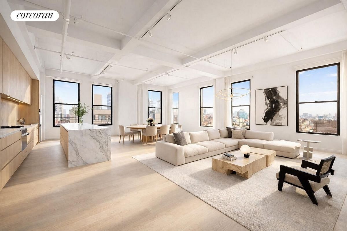 We are pleased to introduce you to Residence 9E at 237 Lafayette Street--a rare SoHo/Nolita corner loft with open skyline views in every direction. Perched on the ninth floor, this expansive loft is wrapped in 15 large windows with south, north, and west exposures-flooding the space with natural light throughout the day and framing unobstructed views of Downtown, the Freedom Tower, and the Empire State Building. Sunsets here are striking! Defined by scale, volume, and light, the space offers high ceilings and a sprawling footprint-an open canvas ready to be transformed. The current imagery illustrates a potential vision; the opportunity is to bring your architect and create a fully custom loft tailored to your lifestyle. Perfectly positioned at the corner of Spring and Lafayette, you are at the center of SoHo's most vibrant stretch-steps from Sant Ambroeus, Jack's Wife Freda, and the neighborhood's best retail and dining. From above, you overlook the energy and movement of downtown, while remaining completely quiet and private. A rare combination of light, views, scale, location, and low monthlies. Bring your architect. Create your dream SoHo loft. Please note there is an ongoing assessment to cover upgrades to the elevator, lobby, and facade.