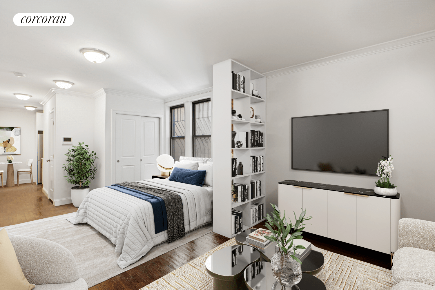 Traditional pre-war moldings and beautiful exposed brick walls add to the personality of this unit.