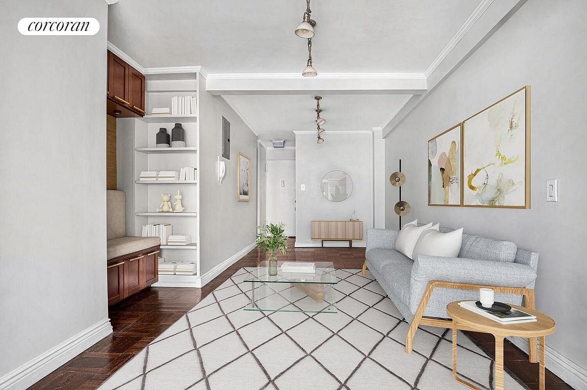 This Jr. 1 Bedroom offers an ideal blend of comfort, style, and prime Upper East Side living. Quiet and inviting, the home features a generously sized living area anchored by a full wall of windows that fills the space with natural light. The thoughtfully renovated custom kitchen is well equipped with ample cabinetry, a dishwasher, and a full-size refrigerator. A built-in banquette seamlessly ties the space together, creating a cozy spot for dining or working from home. Steel-framed translucent sliding doors define the bedroom while allowing light to flow throughout the apartment. The bedroom comfortably accommodates a queen-sized bed and is complemented by a wall of well-organized closets and built-in bookshelves, offering excellent storage. A freshly renovated bathroom is finished in natural stone, delivering a clean, neutral, modern look. It is worth noting there is excellent closet space, 4 large closets in total!