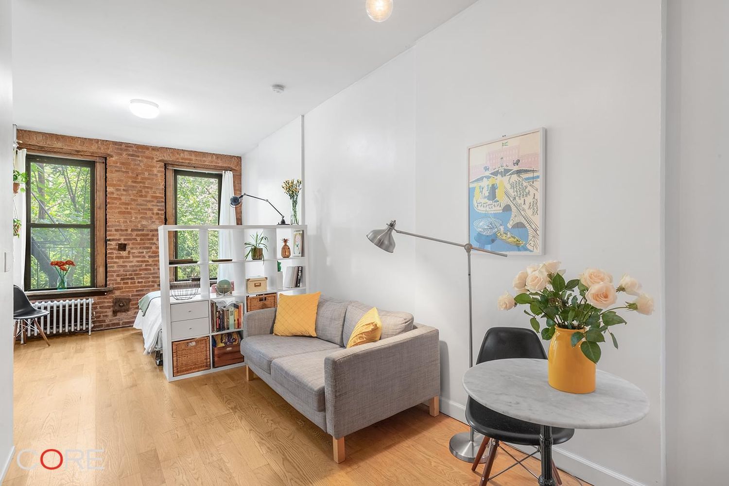 Situated in an intimate, pre-war building on a picturesque tree-lined street just one block away from Tompkins Square Park, this studio is a true gem. Just two flights up, you are greeted by an abundance of natural light and lush garden views from your north-facing windows. Exposed brick and hardwood floors compliment the space, and there are two closets in addition to a storage space in the basement that comes with the apartment. The building features a spectacular common rooftop with panoramic views of the city including the Empire State Building. In addition to the rooftop oasis, the building offers a lovely garden-level common area, basement laundry, bike storage, and is pet-friendly.