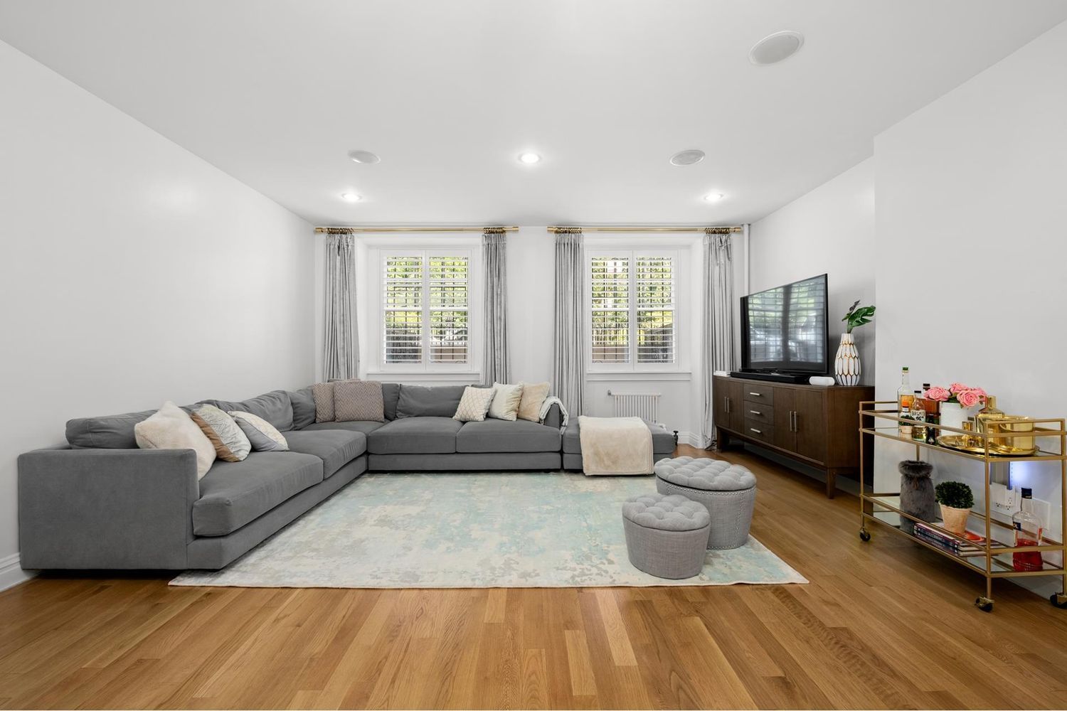 This stunning four bedroom, two and a half bath home with private laundry is designed with the comforts and amenities of suburban living, yet perfectly situated in the heart of the city. Every detail of this residence has been thoughtfully crafted to provide a warm and inviting space that feels like a true home, rather than a temporary living arrangement.As you enter, you'll immediately notice the rich hardwood floors that flow throughout the home, leading you to the open-concept chef's kitchen. The kitchen is a culinary dream, featuring top-of-the-line Viking appliances, including a six-burner range, a large oven ideal for holiday roasts, and a convenient drawer microwave. Custom white shaker cabinets extend to the ceiling, offering a clean and sophisticated look, while also providing ample storage space. The cabinets are equipped with a slow-close feature, and the pantry, thoughtfully designed with built-in outlets, is finished with Caesarstone quartz countertops. These countertops, also used for the kitchen island and backsplash, offer a seamless, stain-resistant surface that is both durable and stylish.