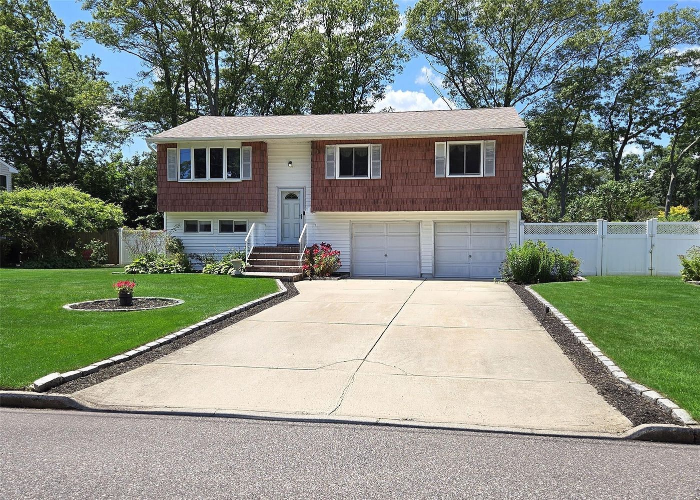 Located in the desirable Hamlet of Sayville, this well-maintained Hi Ranch offers 4 spacious bedrooms and 1.5 bathrooms. Gleaming hardwood floors flow throughout the home, complemented by numerous updates including a 200-amp electrical service, newer oil burner, central air conditioning, roof, and Andersen windows. Enjoy outdoor living in the fully fenced yard featuring an above-ground swimming pool, paver patio—perfect for summer fun. A 2-car garage completes this home, conveniently situated near local shops, restaurants, and beaches.