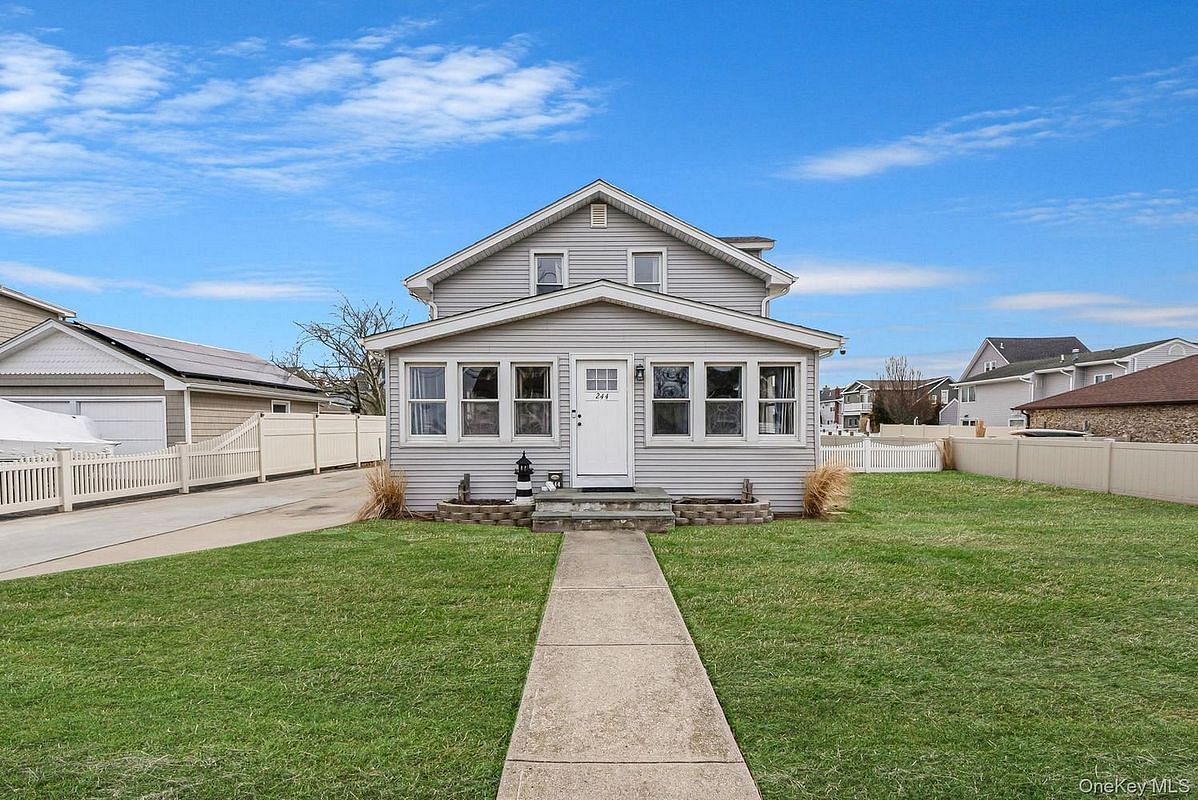 Exceptional location with stunning water views! This 3/4 Bedroom, 2 Full Bathroom Colonial offers an incredible opportunity to enjoy the best of waterfront living. Boasting a private deck, breathtaking sunsets and close proximity to a private beach. Features a custom kitchen (2019), new roof (2019), central air and heating, stainless steel appliances - Refrigerator (2025), and washer/dryer (2025). The spacious 390-Square foot sunroom addition (2023) is a true highlight, offering the perfect space for year-round entertaining and seamless indoor/outdoor flow. Enjoy a beautifully designed backyard with a new paver patio (2024), 16x20 gazebo (included in the sale) and tranquil water views. A (2) car detached garage adds convenience, while the location is just minutes to the village, shopping and dining. It offers the perfect balance of privacy and accessibility. This is your chance to own to own a waterfront sanctuary where everyday feels like a vacation getaway!