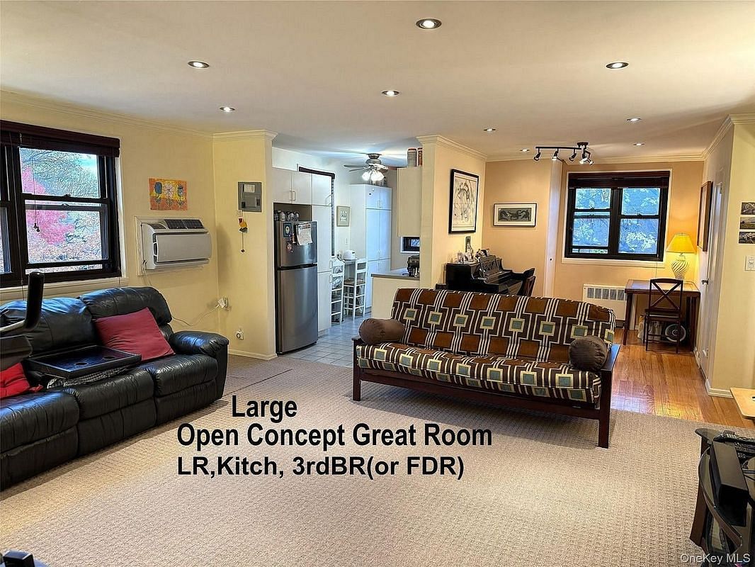 Great Kitchen for Cooking w Good Counter Space and Storage that is Fully Open to Living Areas. There is Generous Room for Everyday Routines and Hosting. This is the Largest 2/3 BR Layout. Lots of Recessed Lighting, Updated Electric, 2 Wall AC’s, Crown Molding, and Hardwood Floors (Under Carpets). 3 Sides Exposure w 11 Windows, All with Tree-Lined Views.