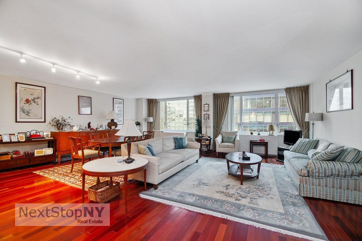 This exquisite two-bedroom, two-bathroom apartment commands a remarkable high-floor position with captivating South and East-facing vistas that infuse the entire space with natural light. Offering the flexibility to convert into a three-bedroom layout, the generously sized living room is an ideal setting for hosting memorable gatherings, while a separate dining area provides an intimate space for meals with loved ones. Gleaming hardwood floors grace the entire residence. The kitchen is a culinary enthusiast's dream, complete with a sunlit window and an abundance of cabinet and counter space. The apartment also boasts two spacious bedrooms, both featuring ample closet space, including two walk-in closets, as well as an entry foyer that can double as a convenient office area.Situated in the highly coveted Midtown East neighborhood, this residence is just a stone's throw away from the E/M/6 subway station, and conveniently close to the 4, 5, N, R, and F trains. Enjoy the convenience of living near the newly opened Trader Joe's, Whole Foods, and an array of fashionable restaurants and boutiques. The Brevard cooperative is a professionally managed building that offers a 24-hour doorman/concierge, modern laundry facilities, and a state-of-the-art rooftop deck with Wi-Fi, perfect for savoring panoramic city views. Shareholders also benefit from discounts at Equinox. Also Blink, and Soul Cycle across the street. Seize this extraordinary opportunity to make this apartment your new home. The purchaser will be responsible for a $2 per share flip tax, and there are 3,229 shares in total. Contact us today to arrange a private viewing! While all information provided herein is deemed reliable, it is subject to errors, omissions, price changes, prior sales or leases, or withdrawal without prior notice. For more details on our listings, please visit THEBREVARD