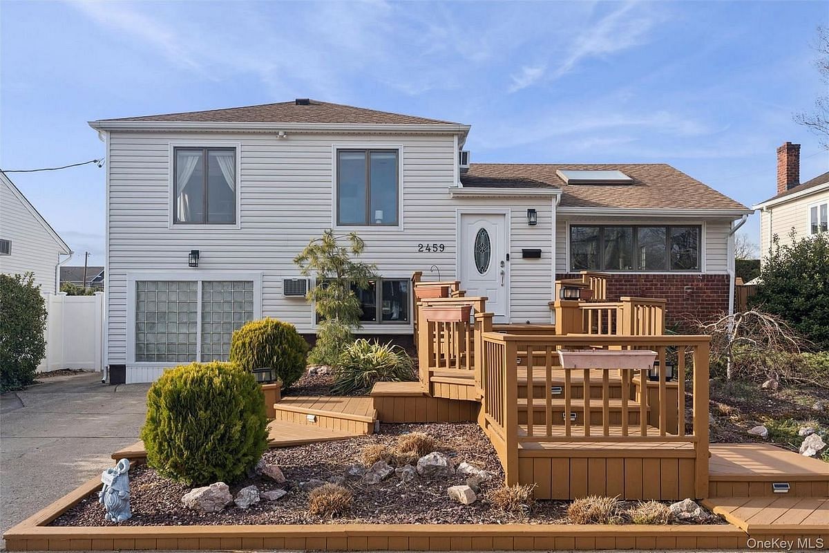Welcome to the very special 2459 Marie Court perfectly situated mid block on a quiet dead end street and exclusively associated with Bellmore Shores. This spacious and sunny home boasts over 2000 sf including a humongous EIK with a tremendous 9x13 pantry plus dual sliders leading out to the beautiful oversized deck and lush grassy backyard. The stately sundrenched living room and dining room offers tons of space for lounging and fantastic flow for all your entertainment wants and needs. The first floor level is pure comfort presenting a cozy den with access to the backyard, full bathroom, laundry room plus a first floor bedroom equipped with a half bath and a private entrance. The bedroom level features a spacious primary en-suite with a huge primary bathroom including a jacuzzi tub, windows galore and plenty of closet space plus 2 additional nicely proportioned bedrooms and full bath. Full basement with oodles and boodles of storage and good ceiling height will satisfy any home buyers basements demands. X Zone. Wood floors under carpet on bedroom level. 200 amp panel. New homeowner has the option to join the Bellmore Shores Civic Association which includes an opportunity to rent a boat slip plus attend the community events. Close to park, schools, beaches, transportation, train, houses of worship and so much more!