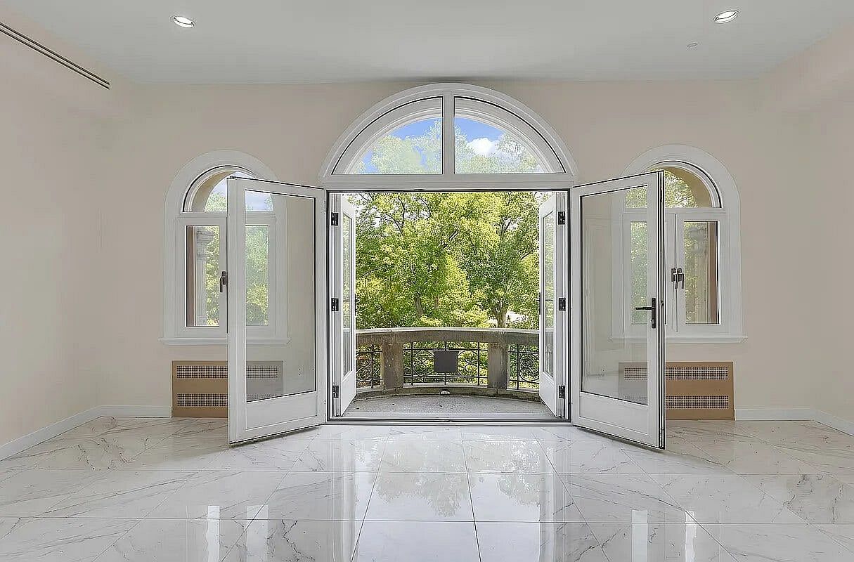 Upon entry, a few steps lead to a grand foyer, followed by a luminous and expansive main living room. With soaring ceilings and remarkable volume, the space is crowned by a dramatic central light dome that floods every floor with natural light.