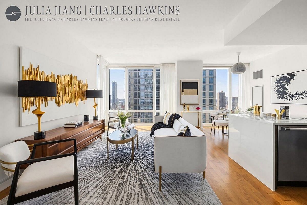 Designed by renowned architect Costas Kondylis, The Platinum offers white-glove service and resort-style amenities, including a 24/7 doorman and concierge, indoor and outdoor yoga studios, a golf simulator, state-of-the-art fitness center, spa lounge, social sauna, billiards room, and a beautifully landscaped wraparound terrace with sweeping skyline views. There's also a private dog run, bike storage, and it's fully pet-friendly.