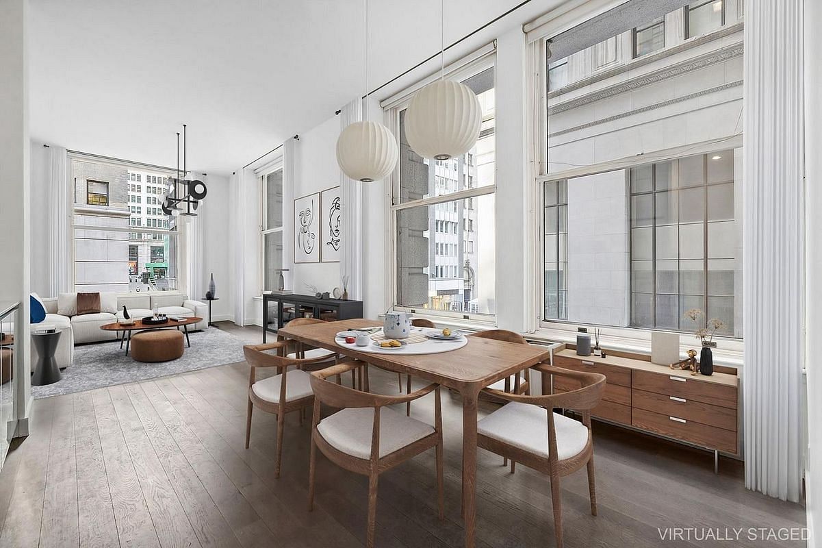 This unique corner residence boasts an abundance of oversized windows that flood the space with natural light. The expansive Great Room, exceeding 400 square feet, comfortably accommodates an 8-seater dining table and offers captivating views of the surrounding landmarks.