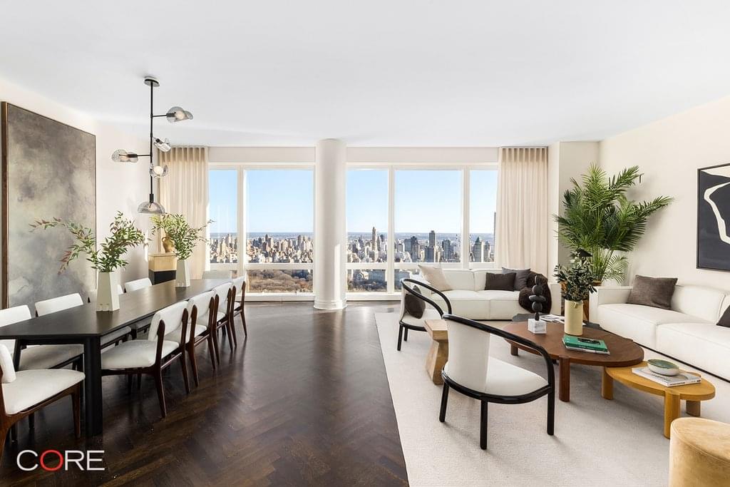 Residence 69C at the coveted Time Warner Center is 2,416 square feet of unobstructed panoramic views of Central Park to the east, the East River to the north, and breathtaking southern exposures of Hudson Yards, the World Trade Center, and the Statue of Liberty.