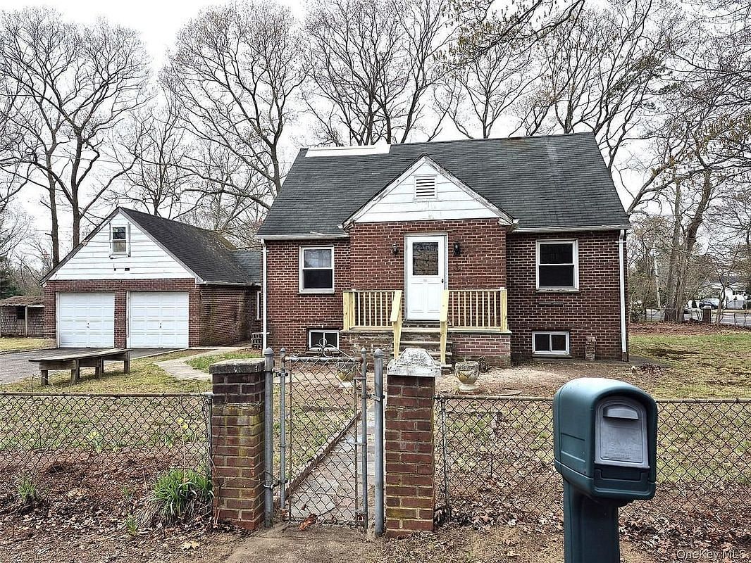 This spacious corner property nestled on a estimated half-acre of land on a dead end street is ready for a new owner to personalize and enhance its appeal. Exceptionally a rare find Long Island property, it features three bedrooms, two bathrooms, an open-concept kitchen, a separate dining room, a full basement, and an attached two-car garage. This sturdy brick Cape Cod-style home offers abundant natural light and ample storage space above the garage. Enjoy a basement walkout, and convenient access—just four minutes from shopping, dining, and everything you need for a comfortable lifestyle.