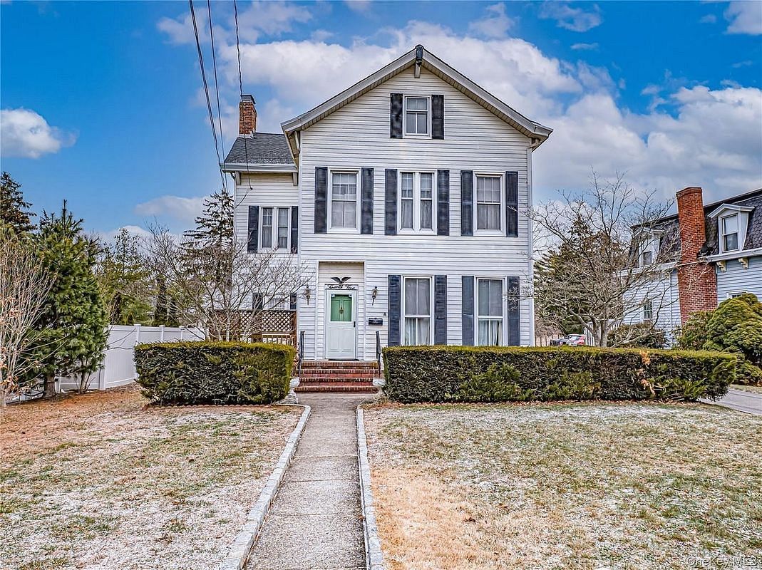 Welcome to this exceptional waterfront in the heart of Bay Shore, a rare 1850-built home rich in timeless charm and character. From the moment you step inside, you'll appreciate the original hardwood doors, custom moldings, and soaring high ceilings that showcase its historic elegance. Offering three full floors of living space, this six-bedroom, 3.5-bath residence provides incredible flexibility, including room for extended guests or a convenient ground-floor primary bedroom. With generous living areas throughout, there's truly space for everyone. Outside, the property continues to impress with a five-car detached garage/barn plus an additional one-car detached garage, four private dock spaces, and a premier waterfront setting. Perfectly located close to Bay Shore's vibrant downtown, ferries, LIRR, dining, and more, this is a truly special opportunity to own a piece of Bay Shore history on the water.
