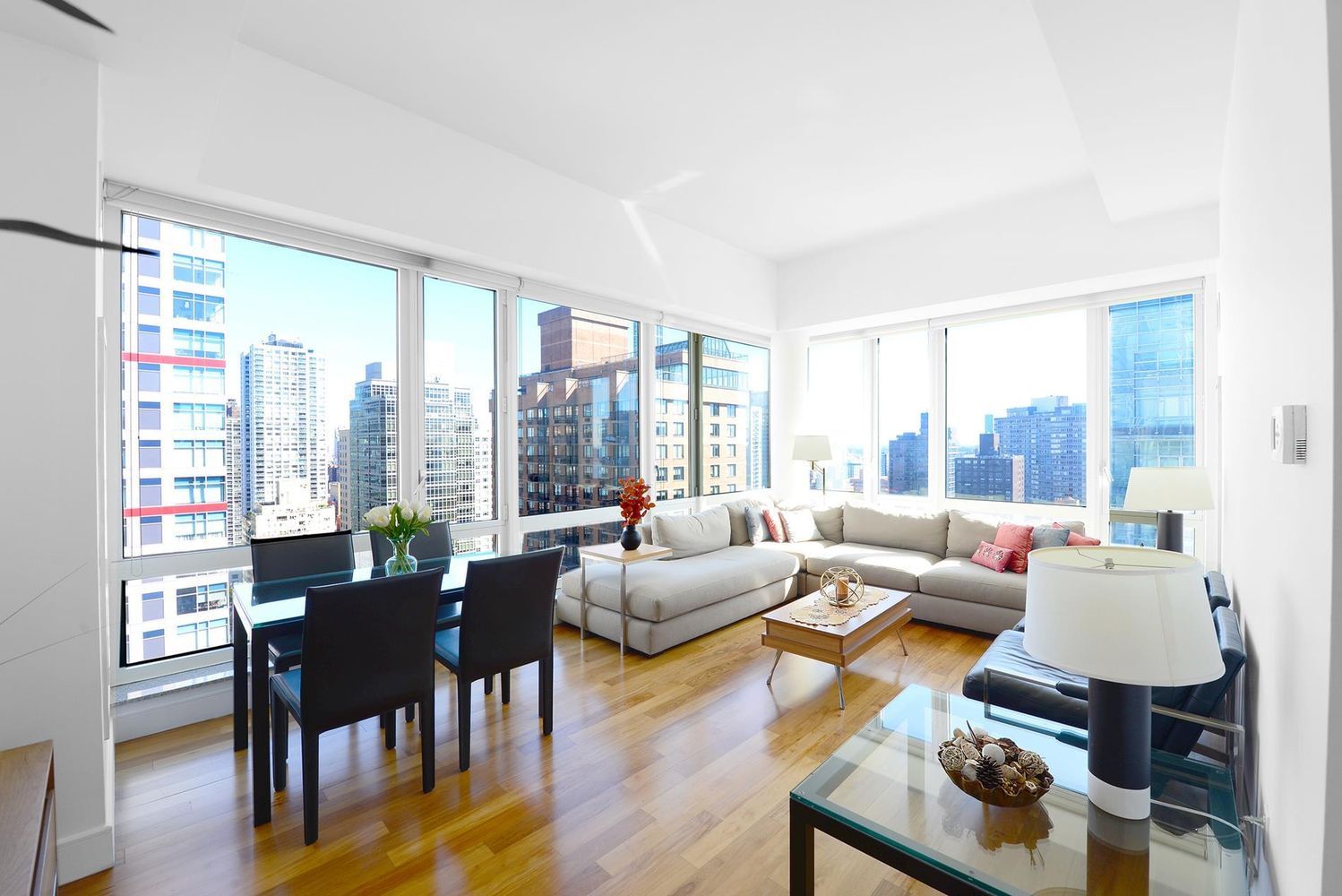 Welcome to this exceptional 2-bedroom, 2-bathroom unit perched high above the city on the 33rd floor. This spacious residence offers breathtaking city and river views through floor-to-ceiling windows, filling each room with natural light. The open living and dining area provides an ideal space for entertaining, with a sleek modern kitchen featuring top-of-the-line appliances, custom cabinetry, and granite countertops. Both bedrooms are generously sized with en-suite bathrooms, ensuring privacy and comfort. The primary suite includes a luxurious bathroom with double sinks, a soaking tub, and a separate glass-enclosed shower. Additional features include hardwood floors throughout, an in-unit washer and dryer, and ample closet space. Enjoy the buildings premium amenities, including a 24-hour doorman, fitness center, residents lounge, and more. Dont miss the opportunity to make this exquisite home yours!
