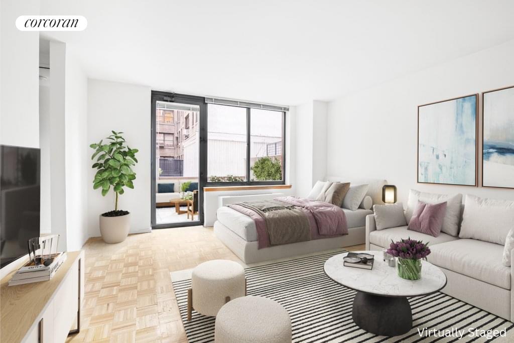 Welcome to your future home nestled in the heart of West 89th Street, the perfect blend of charm, comfort, and convenience. This well-maintained Second-Floor Co-op Studio Unit 2A offers a tranquil retreat away from the city's hustle and bustle with a lovely private outdoor terrace. Step inside to be greeted by continuous hardwood floors and an impressive 9-foot ceiling, creating an open, airy atmosphere. The residence expertly combines traditional design elements with modern amenities, offering a comfy space that is fully equipped to meet your day-to-day needs. Studio is perfect for post-work relaxation or catching up with your favorite books. Fans of cooking will enjoy the traditionally styled kitchen that offers ample storage space and functionality.