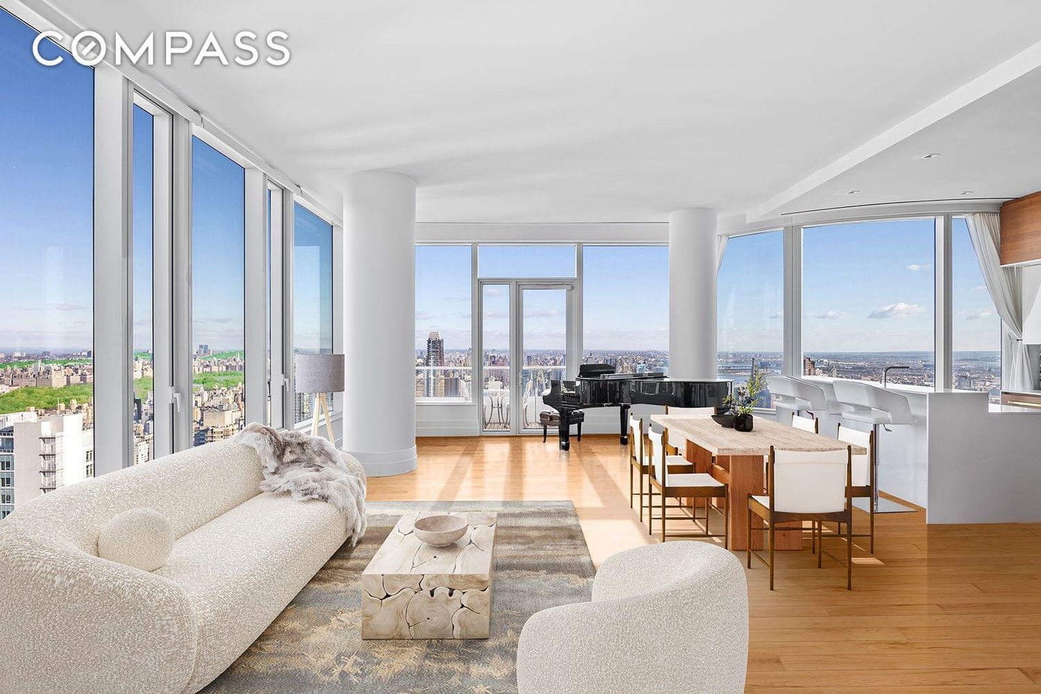 This extraordinary light-filled corner home offers stunning views of Central Park, the East River, and the NYC skyline, blending sophisticated design, expansive space and breathtaking vistas