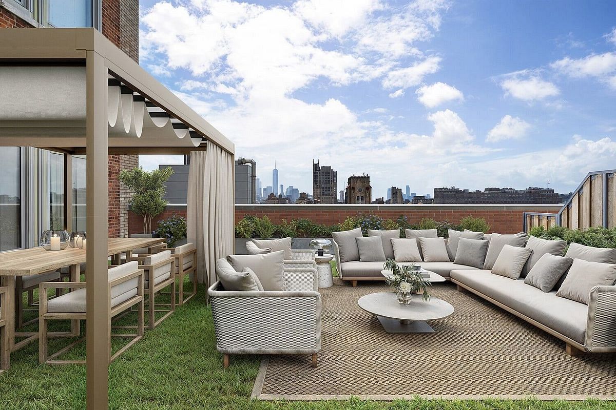 The Chelsea Mercantile is a full-service prewar condominium offering 24-hour doorman and concierge service, a live-in superintendent, valet services, a fully equipped fitness center, children's playroom, and direct access to a full-service garage. Residents also enjoy an expansive, beautifully landscaped 10,000-square-foot rooftop terrace with sweeping, panoramic views of the Manhattan skyline-an ideal setting to relax or entertain high above the city.