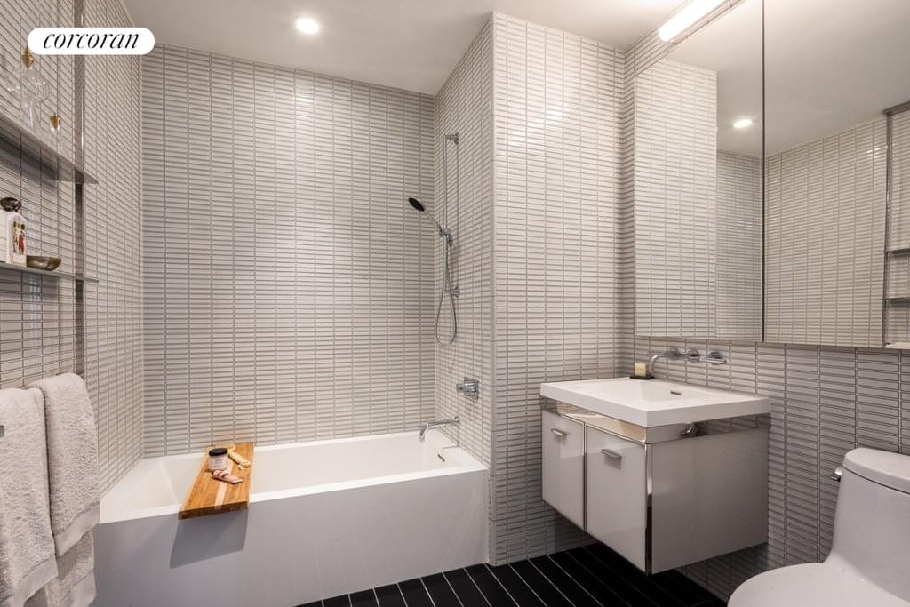 Residence 30H is a 1156 square foot two bedroom, two bathroom, with an open gourmet kitchen and breakfast bar. This spacious corner residence faces North East and South East with expansive Midtown, East River and Manhattan Bridge views. Warm, modern interiors are brought to life by the renowned design team at Meyer Davis Studio. This residence features imported stone and custom finishes, premium Miele appliance package, 5" wide stained oak flooring, master bath with custom wood cabinetry, marble tile walls and mosaic floors with radiant heat, under-mount Wetstyle sink with glass vanity top and Dornbracht polished chrome faucets and a washer and dryer.