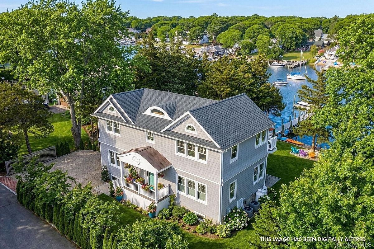 This newly constructed, post-modern waterfront home offers a unique blend of elegance and functionality. With three spacious bedrooms and three full bathrooms, it's designed to provide comfort and convenience in equal measure. The heart of this home is undoubtedly the kitchen, equipped with granite countertops, a stainless-steel package and Viking range. An island featuring a Black Walnut countertop not only adds a touch of sophistication but also provides additional workspace for culinary adventures. The home's heating system is powered by propane, ensuring a warm and cozy environment during the colder months. Outside, a 15x15 pressure-treated deck and 12x47 paver patio offers an ideal spot for outdoor dining or simply enjoying the breathtaking water views. The property also features a five-zone irrigation system, and an on-site home generator. The home's exterior is further enhanced by a front portico with a distinctive copper roof, adding a touch of elegance to the overall design. What sets this property apart is the 40' deep water dock. Whether you're a boating enthusiast or simply enjoy the serenity of waterfront living, this feature is sure to appeal. This home is part of a welcoming community where luxury meets comfort and where every detail has been thoughtfully considered.