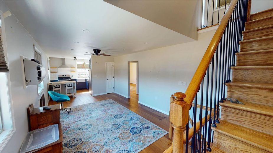 This fabulously renovated upper has a walkout rooftop deck! The bathroom has been thoughtfully renovated and reconfigured to hold the extra large washer and dryer. Downstairs unit is also for sale!