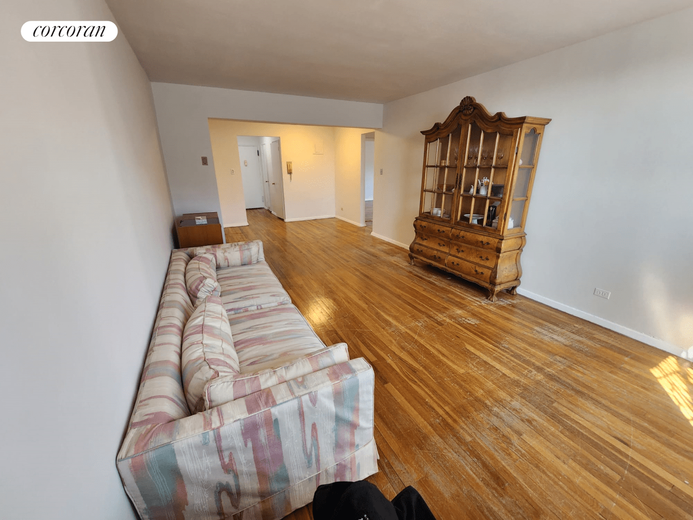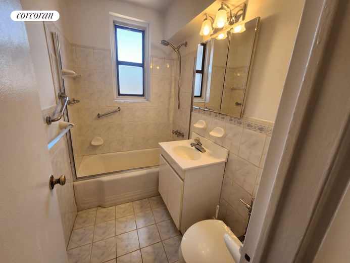This stunning 7th-floor corner apartment offers 915 sq ft of living space in the Spuyten Duyvil section of Riverdale. The unit features 2 spacious bedrooms and 1 full bathroom, with large windows allowing natural light throughout. The primary bedroom is king-sized with two large windows and two closets, while the secondary bedroom also boasts two large windows and ample closet space. Additional storage includes three closets in the entrance foyer. The apartment is equipped with two window AC units, one AC sleeve, and radiator heat.